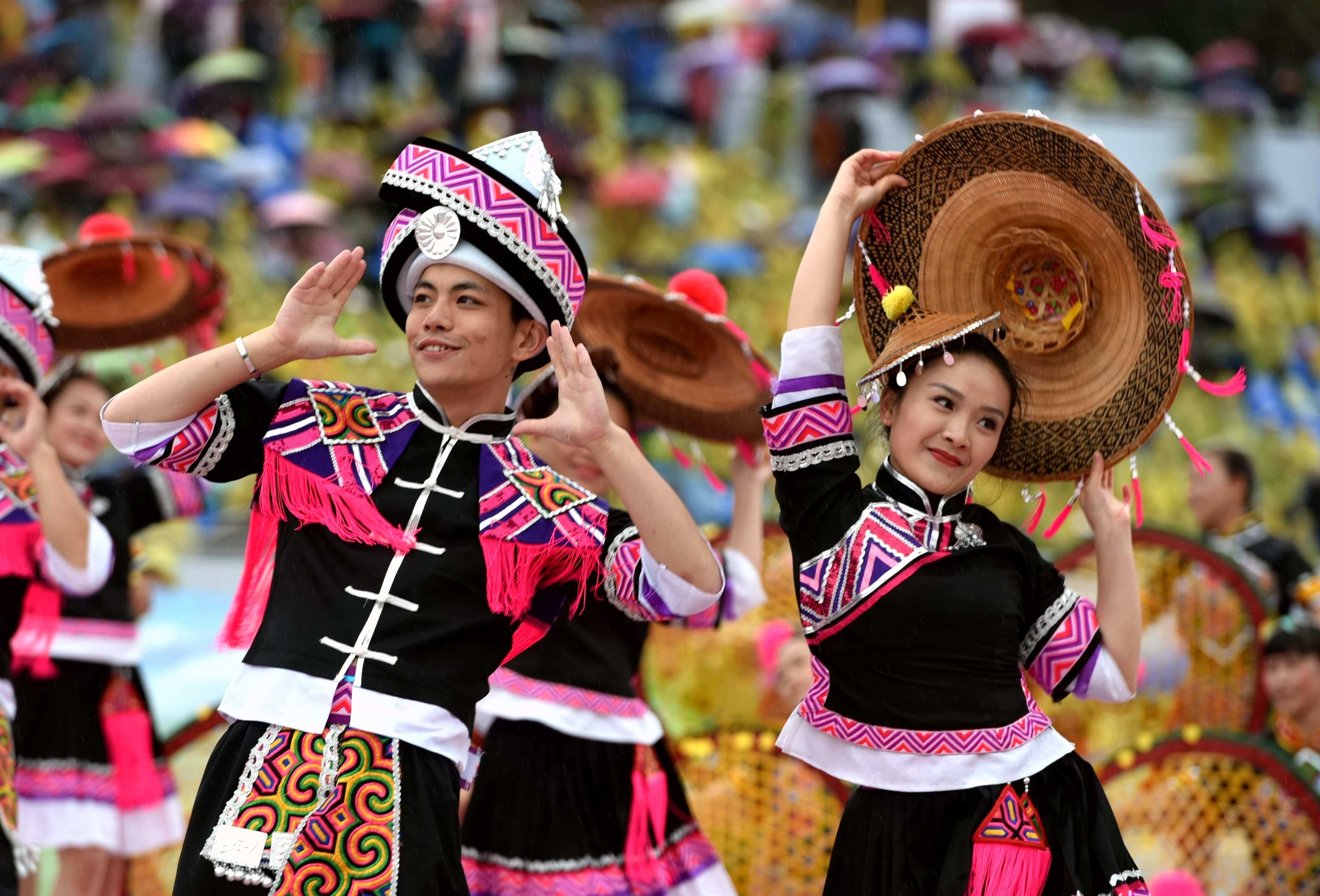 △2020年5月,廣西環(huán)江毛南族自治縣退出貧困縣序列,毛南族實(shí)現(xiàn)整族脫貧。這是2017年11月18日,廣西環(huán)江毛南族自治縣群眾載歌載舞,喜迎30年縣慶。