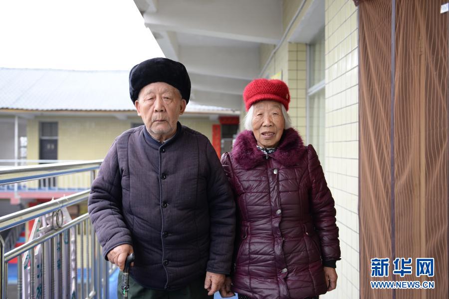 這是1月27日在湖南省張家界市永定區(qū)大溶溪光榮院拍攝的侯宗元(左)和老伴田益姑。新華社記者 陳振海 攝