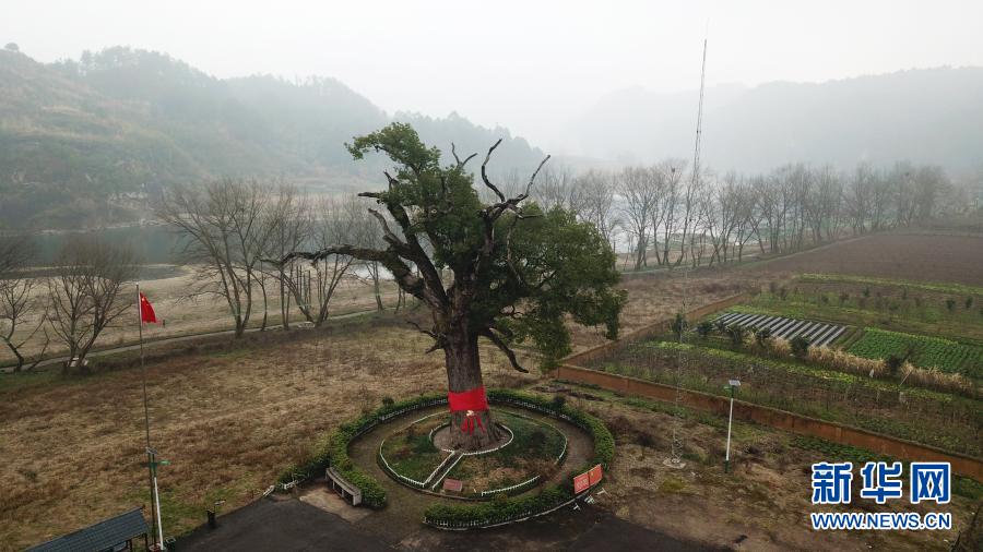 這是1月28日在湖南省張家界市慈利縣溪口鎮(zhèn)樟樹(shù)村拍攝的“紅軍樹(shù)”(無(wú)人機(jī)照片)。新華社記者 陳振海 攝