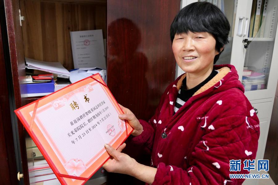 1月26日,湖南省張家界市桑植縣洪家關(guān)光榮院院長(zhǎng)賀曉英展示“返聘證書(shū)”。30多年來(lái),賀曉英服務(wù)過(guò)100多位革命老人。新華社記者 蘇曉洲 攝