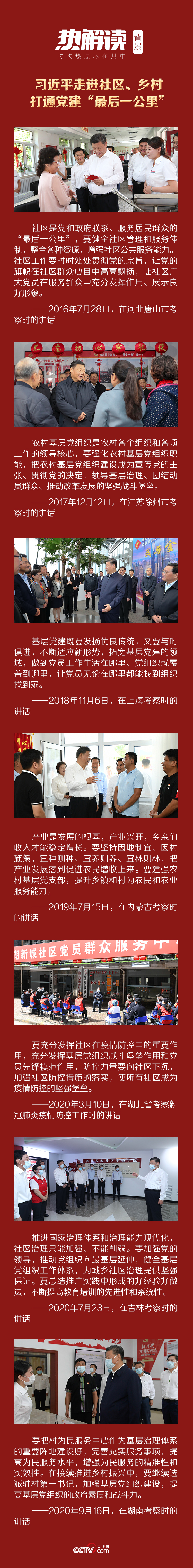 黨的十八大以來,從社區(qū)服務中心到黨員活動室,從社區(qū)干部學院到村服務中心……習近平總書記深入農(nóng)村,走進社區(qū),不斷通過打通黨建“最后一公里”,全面加強黨的建設。