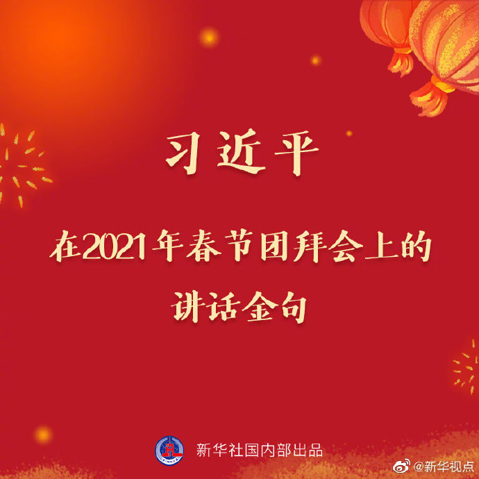 中共中央、國(guó)務(wù)院10日上午在人民大會(huì)堂舉行2021年春節(jié)團(tuán)拜會(huì)。習(xí)近平發(fā)表講話。戳圖讀金句↓