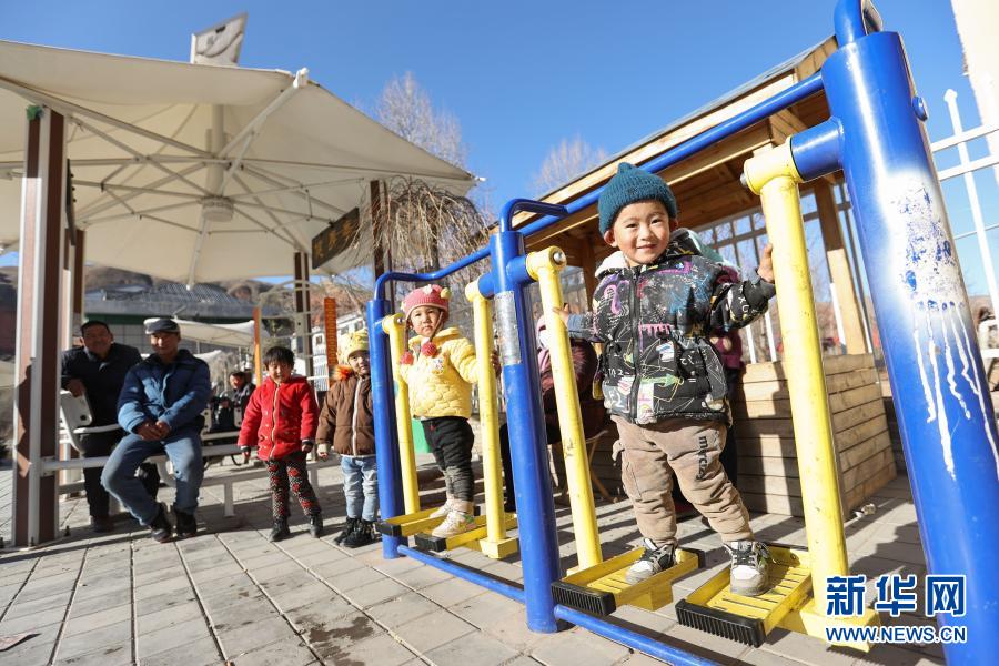 2月5日,在青海省海東市平安區(qū)三合鎮(zhèn)的易地搬遷集中安置區(qū),村民們在小區(qū)廣場上玩耍。