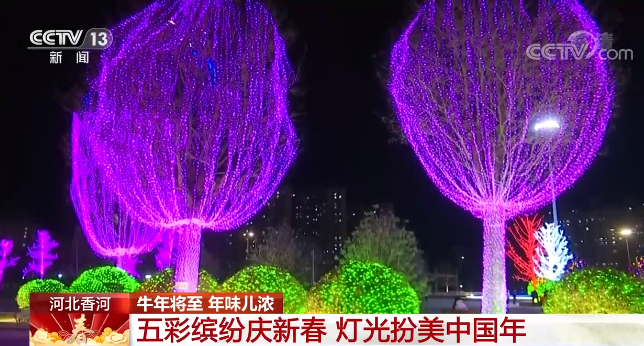在河北廊坊市香河縣,城區(qū)亮化景觀和節(jié)日彩燈全部點(diǎn)亮。新城公園、五一公園等重要節(jié)點(diǎn)的亮化光源裝飾一新,街道兩側(cè)的行道樹上纏繞著五彩繽紛的線燈,營造出錯落有序、層次鮮明的亮麗夜景。街道兩側(cè)一串串火紅的燈籠,烘托出濃濃的年味。
