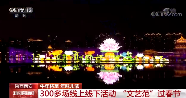 今年春節(jié)期間,陜西西安市組織了5大系列300余項(xiàng)線上線下活動,給居民們送上豐富的文化大餐。在大唐芙蓉園,水陸花燈絢麗多彩,“荷塘月色”“悅動花!薄皭壑畱佟钡葻艚M展現(xiàn)出滿園春色,傳遞著幸福喜悅。