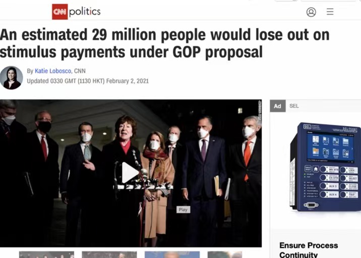 △CNN稱,根據(jù)共和黨的提案,預(yù)計約有2900萬美國人將失去刺激支票