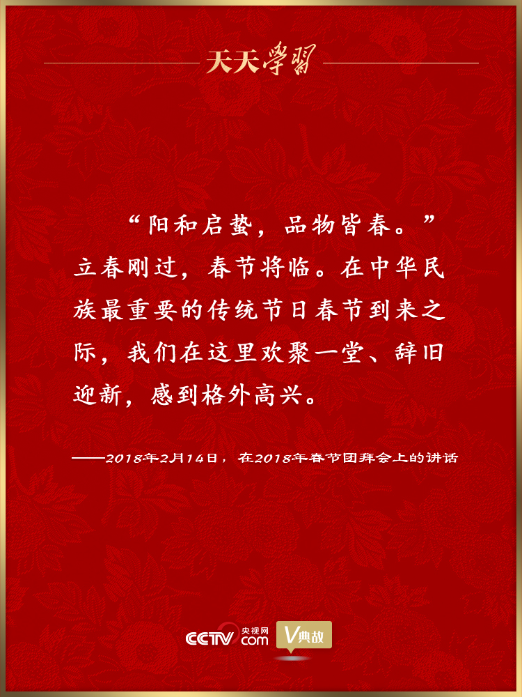 2018年,祖國(guó)大地春來(lái)早,立春剛過(guò),春節(jié)將臨。在春節(jié)團(tuán)拜會(huì)上,習(xí)近平總書(shū)記在講話開(kāi)場(chǎng)即引用“陽(yáng)和啟蟄,品物皆春”這一名句,描繪了祖國(guó)大地春風(fēng)拂面、萬(wàn)象更新的景象。