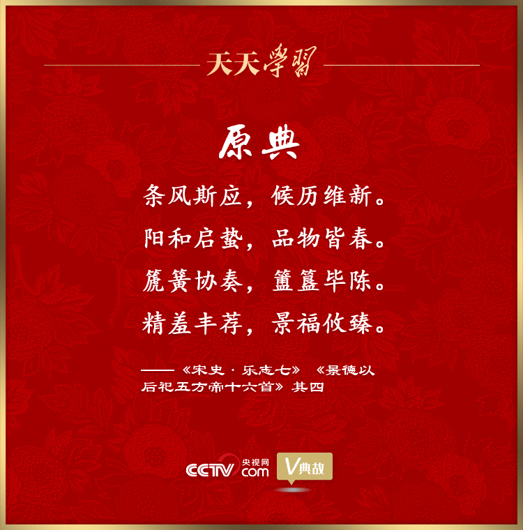 “陽(yáng)和啟蟄,品物皆春”出自《宋史·樂(lè)志七》,原為宋朝郊廟朝會(huì)的歌辭,后成為描繪春天的經(jīng)典名句。意思是,在溫暖春風(fēng)的吹拂下,蟄伏一冬的動(dòng)物又開(kāi)始活動(dòng)了,萬(wàn)物復(fù)蘇,一片生機(jī)勃勃。
