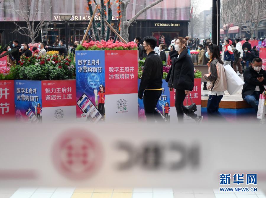 春節(jié)期間,“數(shù)字王府井 冰雪購物節(jié)”數(shù)字人民幣紅包試點(diǎn)活動(dòng)在王府井大街進(jìn)行(2月12日攝)。新華社記者 張晨霖 攝