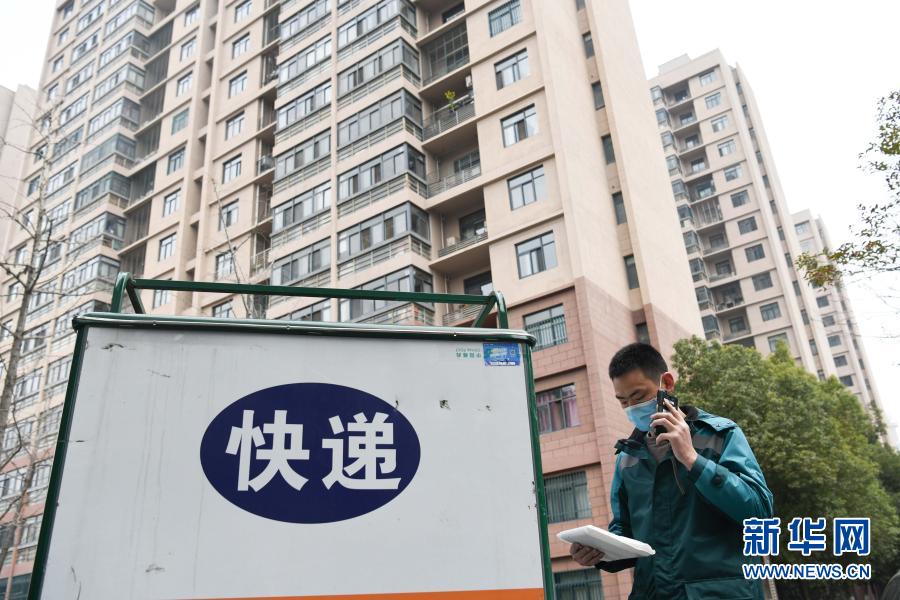 2月11日,中國郵政攬投員劉元元在安徽省合肥市青陽路社區(qū)一處居民小區(qū)內(nèi)派送快遞。新華社記者 張端 攝