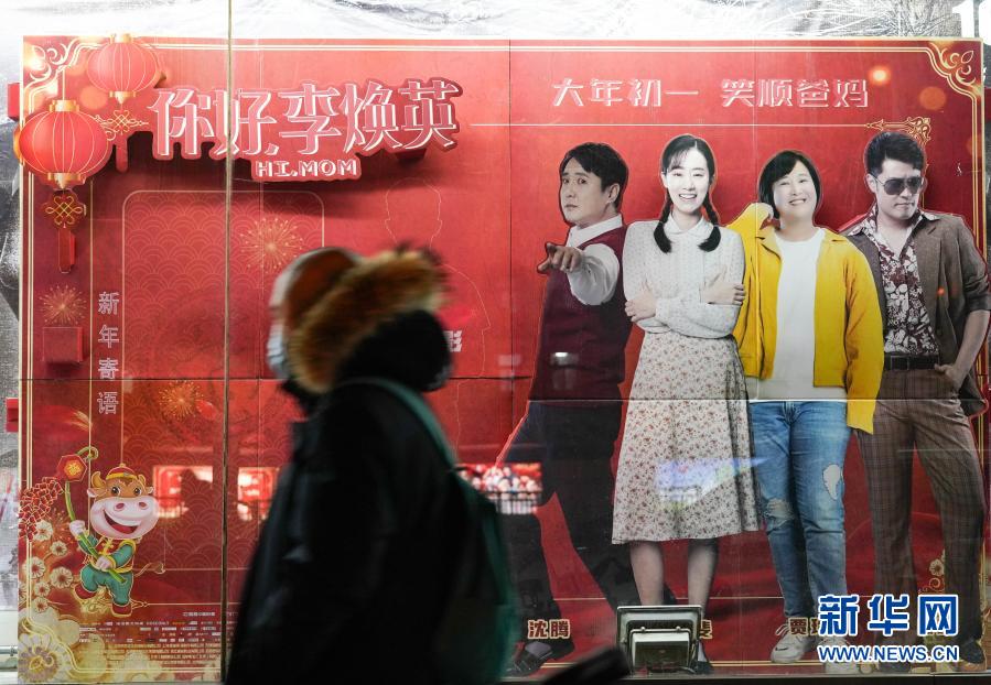 2月17日,在北京的中影國際影城外,市民從電影《你好,李煥英》海報(bào)前走過。新華社記者 陳鐘昊 攝