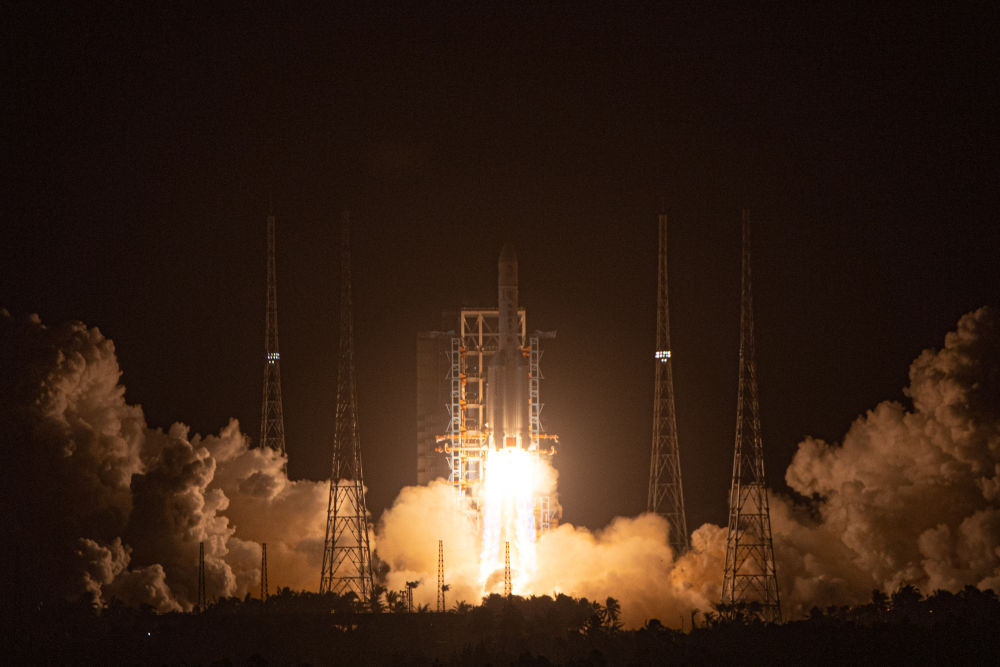 2020年11月24日4時30分,長征五號遙五運載火箭在中國文昌航天發(fā)射場點火升空,將運送嫦娥五號探測器至地月轉移軌道。新華社記者蒲曉旭攝