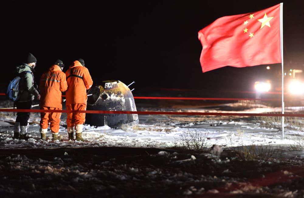 23天后的12月17日凌晨,內(nèi)蒙古四子王旗。在闖過月面著陸、自動采樣、月面起飛、月軌交會對接、再入返回等多個難關后,歷經(jīng)重重考驗的嫦娥五號返回器攜帶月球樣品,成功返回地面。