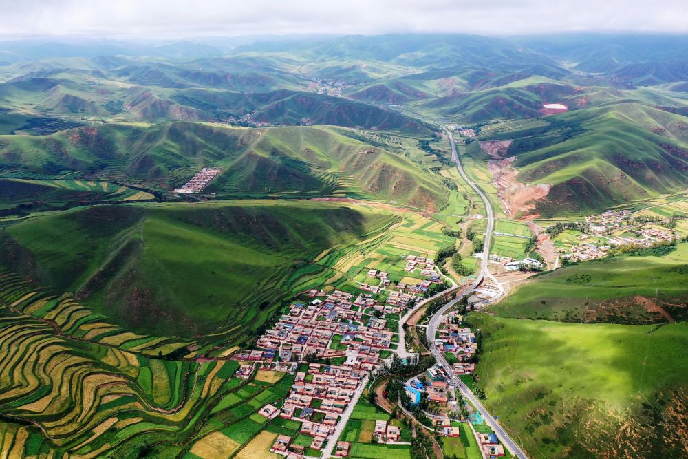 這是2020年8月12日拍攝的甘肅省甘南藏族自治州卓尼縣阿子灘鎮(zhèn)阿子灘村(無人機照片)。新華社記者 邢廣利 攝