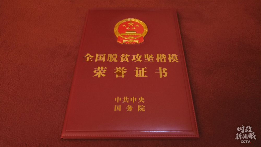 △“全國(guó)脫貧攻堅(jiān)楷!睒s譽(yù)稱(chēng)號(hào)獎(jiǎng)?wù)屡c證書(shū)(總臺(tái)央視記者彭漢明拍攝)