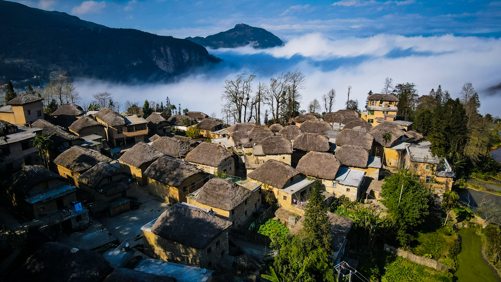 傳統(tǒng)村落承載著中華民族的歷史記憶,寄托著中華兒女的鄉(xiāng)愁。圖為2020年12月17日航拍的云南省元陽縣哈尼族傳統(tǒng)村落阿者科村。 人民圖片 龍俊/攝