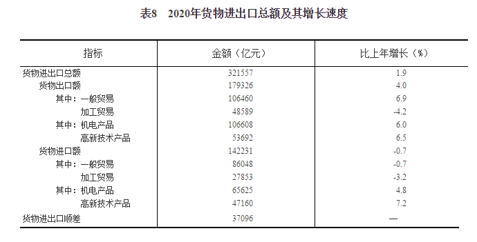 國(guó)家統(tǒng)計(jì)局:2020年貨物進(jìn)出口總額321557億元 比上年增長(zhǎng)1.9%