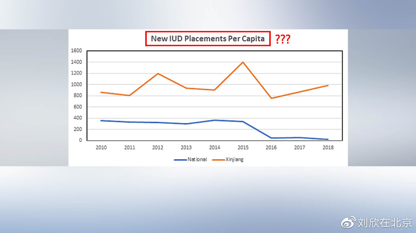 這是純粹的捏造。更糟糕的是,在鄭國恩的“論文”中有一個(gè)圖表,他聲稱新疆的婦女(年)人均接受的節(jié)育器植入數(shù)量在800到1400個(gè)之間。這意味著什么?根據(jù)鄭國恩的說法,新疆婦女每人每天都要接受4到8次節(jié)育器放置手術(shù)。一個(gè)人怎么可能在一天內(nèi)接受那么多次節(jié)育手術(shù)呢?這完全不符合常識(shí)。