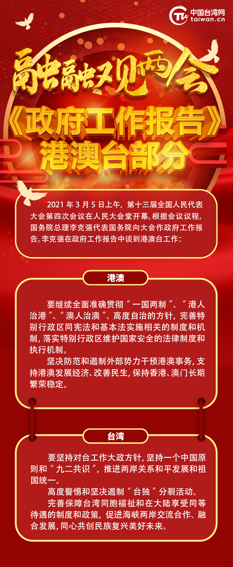 【融融看兩會】劃重點,一圖讀懂《政府工作報告》港澳臺部分