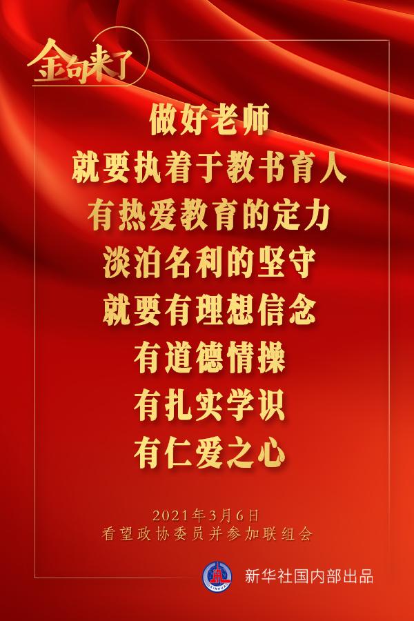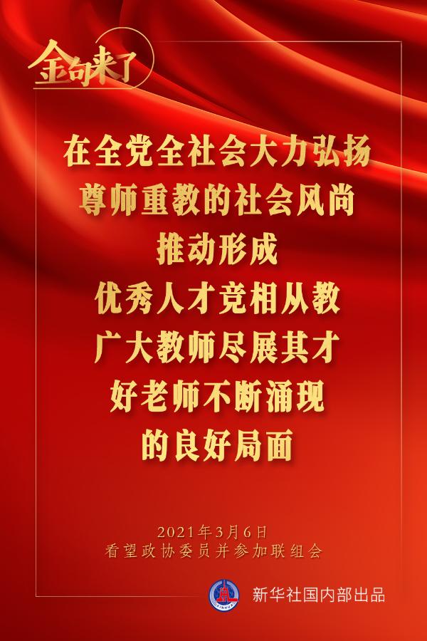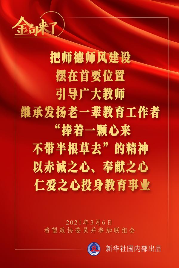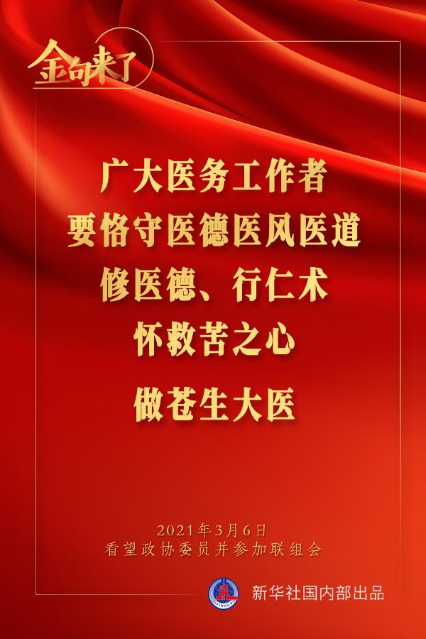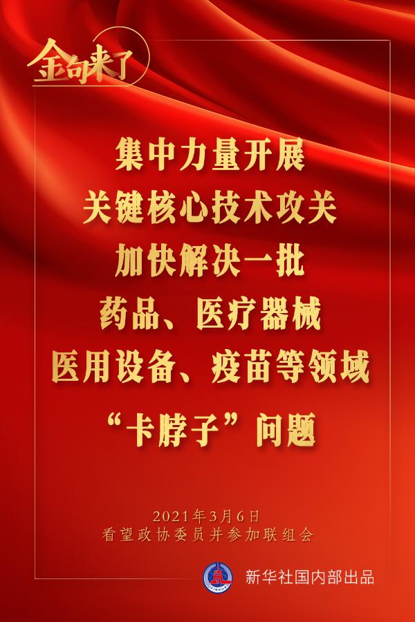 集中力量開展關鍵核心技術攻關,加快解決一批藥品、醫(yī)療器械、醫(yī)用設備、疫苗等領域“卡脖子”問題;依法嚴厲打擊醫(yī)鬧和暴力傷醫(yī)行為;有高質(zhì)量的教師,才會有高質(zhì)量的教育……3月6日下午,習近平總書記在看望參加全國政協(xié)十三屆四次會議的醫(yī)藥衛(wèi)生界、教育界委員并參加聯(lián)組會時,講了這些重要觀點。一起來學金句。
