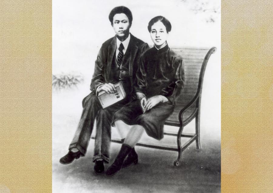 拍攝結(jié)婚照時,這對革命伉儷相依而坐