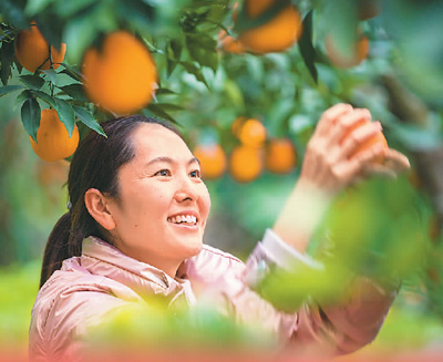 湖北省宜昌市秭歸縣水田壩鄉(xiāng)以鄉(xiāng)村獨(dú)特的自然資源、生產(chǎn)形態(tài)、生活風(fēng)情為依托,采取政府主導(dǎo)、農(nóng)民主體、全域規(guī)劃、市場(chǎng)運(yùn)行等辦法,大力發(fā)展特色鄉(xiāng)村旅游。圖為2020年12月12日,游客在秭歸縣水田壩鄉(xiāng)上壩村采摘臍橙。