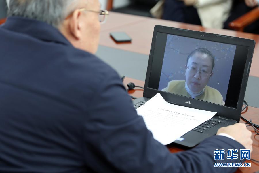 3月7日,全國人大代表、山東省泰安市農科院食用菌研究所所長孔怡(屏幕畫面中)同農業(yè)農村部種業(yè)管理司副司長孫好勤在北京進行網絡視頻連線。這是一次不尋常的兩會“速遞”:3月5日代表提出建議,3月6日建議經國務院辦公廳轉到農業(yè)農村部,3月7日中午就實現(xiàn)了部門與代表的“云對話”。新華社記者 李木子 攝