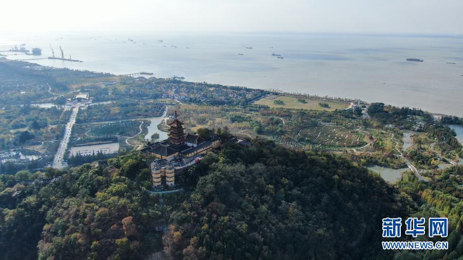 2020年11月13日拍攝的南通狼山及附近江景(無人機(jī)照片)。近年來,江蘇南通全面實(shí)施五山及沿江地區(qū)生態(tài)保護(hù)和修復(fù)工作,促進(jìn)長江岸線水土保持和水源涵養(yǎng)。新華社記者 季春鵬 攝