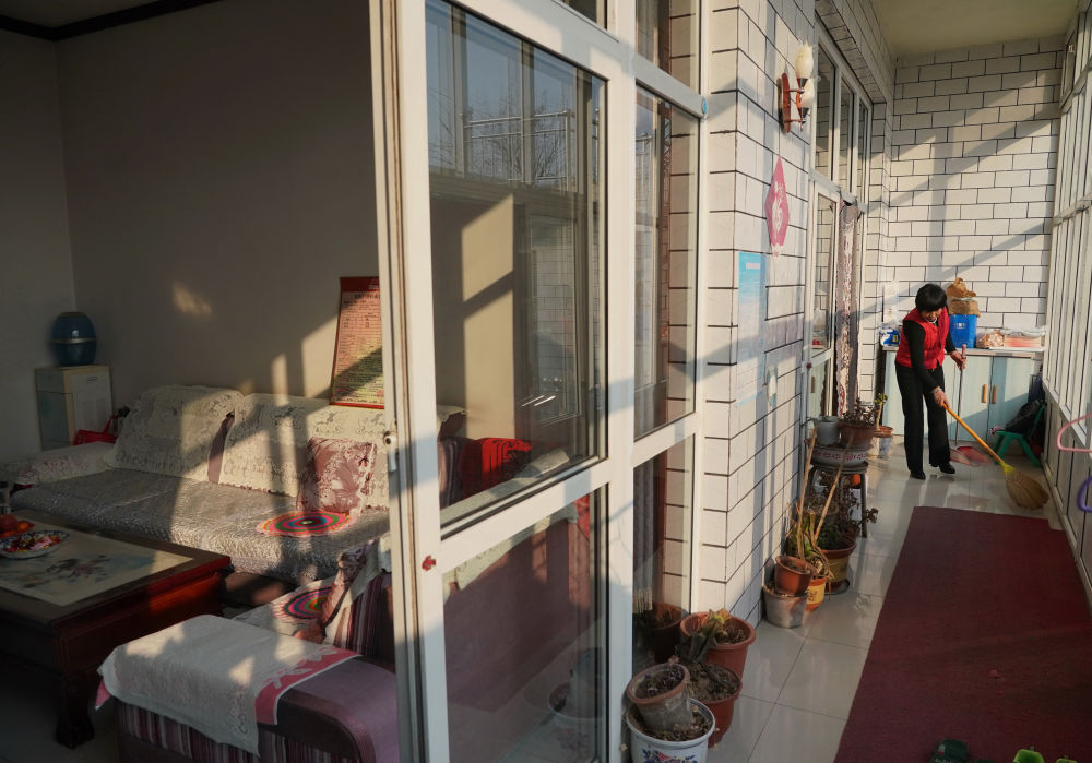 △2021年2月9日,平山縣西柏坡鎮(zhèn)北莊村已脫貧的村民王俊彥在家中打掃衛(wèi)生。