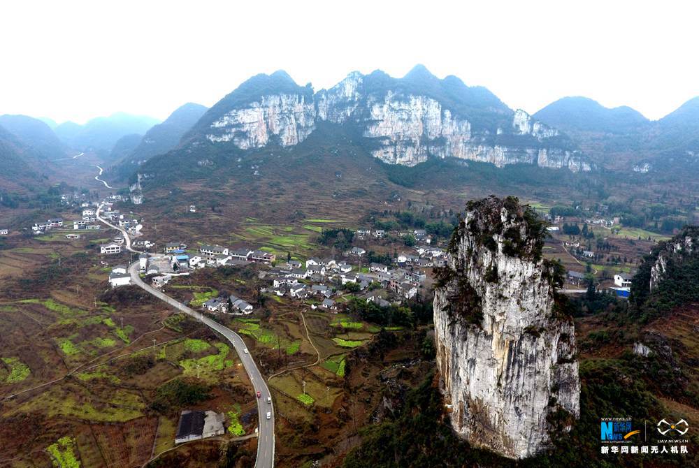 航拍貴州納雍縣化作鄉(xiāng)槍桿巖村的通村公路。新華網(wǎng) 周遠(yuǎn)鋼攝