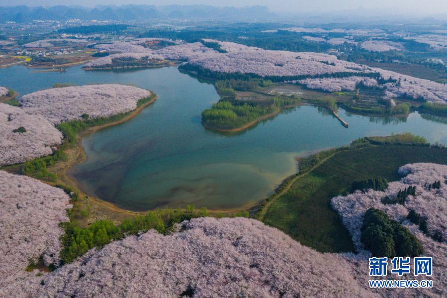 近日,貴州省貴安新區(qū)紅楓湖畔的櫻花觀光園內(nèi)萬(wàn)畝櫻花競(jìng)相盛開,吸引不少游客前來(lái)觀賞。