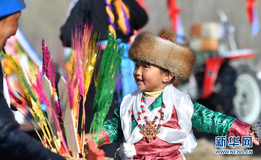 3月16日,2歲的小姑娘丹增色珍在開春儀式上吃“切瑪”。新華社記者 覺果 攝