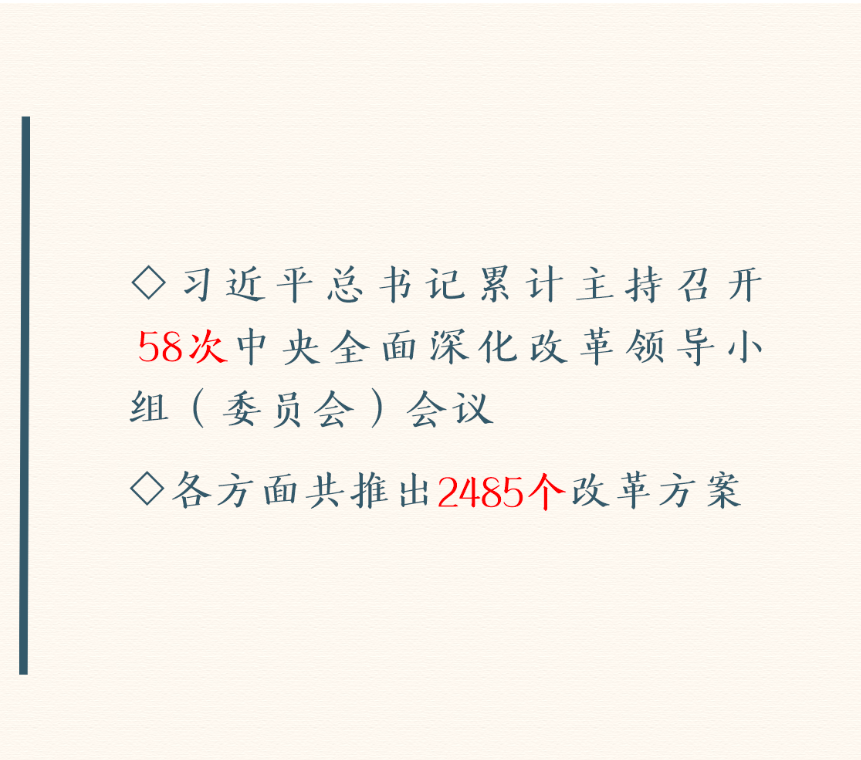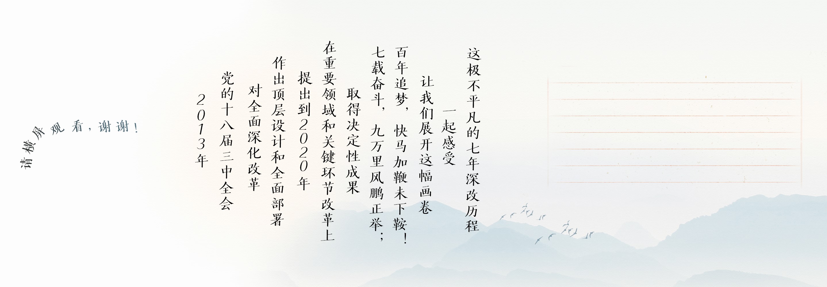 2013年,黨的十八屆三中全會(huì)吹響了全面深化改革的號(hào)角。以習(xí)近平同志為核心的黨中央對(duì)全面深化改革作出頂層設(shè)計(jì)和全面部署,提出到2020年在重要領(lǐng)域和關(guān)鍵環(huán)節(jié)改革上取得決定性成果的目標(biāo)任務(wù)。