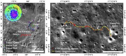 △“ 嫦娥四號”著陸區(qū)地質(zhì)背景圖以及“ 玉兔二號”前13月晝巡視路線圖