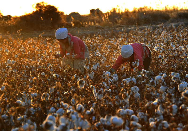 圖為拾花工在新疆庫(kù)爾勒勝利棉業(yè)有限公司棉田采摘棉花。新華社發(fā)