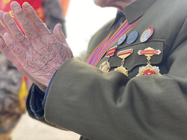 雖已年過九旬,李明海老人依然身體健康,眼神依舊剛毅堅定,軍人風采不減當年。現(xiàn)場講述當年出國作戰(zhàn)參加抗美援朝的英雄歲月時,老兵顯得十分激動,“當時動員赴朝作戰(zhàn),我主動報名,補充到了中國人民志愿軍20軍59師176團,1951年冬天,踩著冰跨過鴨綠江到達朝鮮,第二年夏天,在陣地上堅守了兩個多月,因負傷才下陣地的!