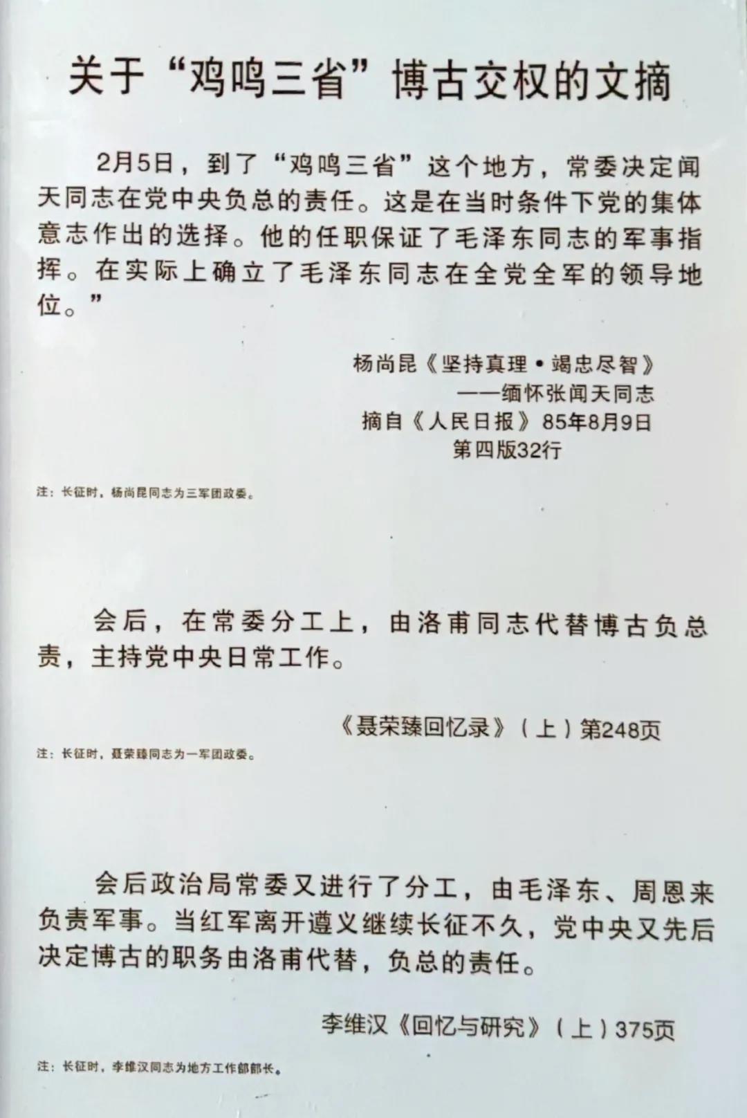 “洛甫那個時候提出要變換領(lǐng)導(dǎo),他說博古不行。我記得很清楚,毛主席把我找去說,洛甫現(xiàn)在要變換領(lǐng)導(dǎo)。我們當(dāng)時說,當(dāng)然是毛主席,聽毛主席的話。毛主席說,不對,應(yīng)該讓洛甫做一個時期!f服了大家,當(dāng)時就讓洛甫做了。”