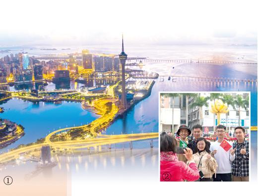 伶仃洋畔,歡歌笑語。當(dāng)天,澳門舉行了“邁向美好明天”大巡游。4500多人組成了21個(gè)花式表演方陣、24輛大型花車及群眾方陣,規(guī)?涨啊