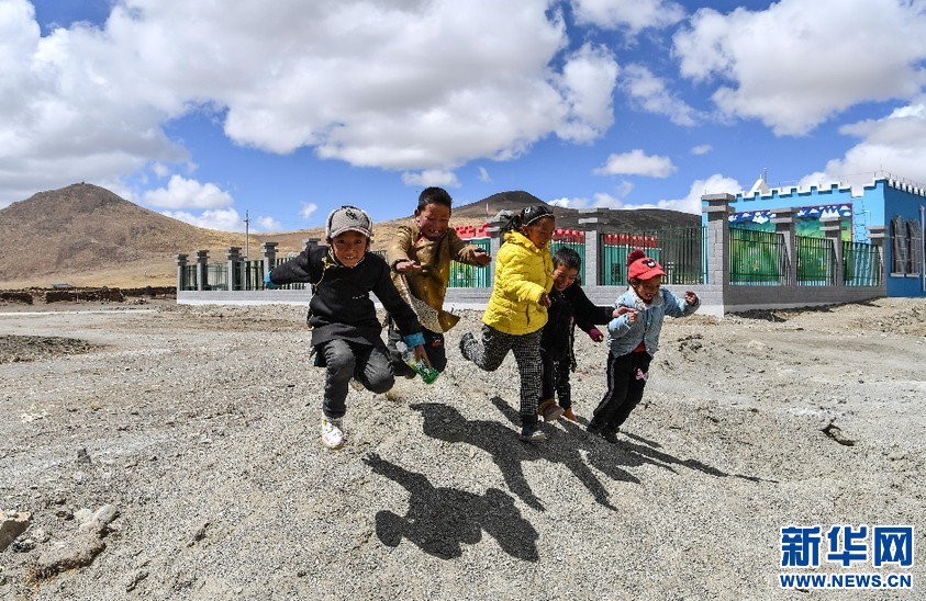 在我國海拔最高的行政鄉(xiāng)——西藏山南市浪卡子縣普瑪江塘鄉(xiāng),小朋友們在新建成的幼兒園前玩耍(2020年4月16日攝)。新華社記者 晉美多吉 攝