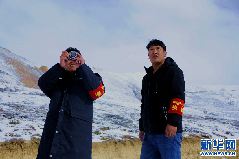 阿里地區(qū)楚魯松杰鄉(xiāng)干部群眾在牧場例行巡邏(2019年1月8日攝)。新華社記者 陳尚才 攝