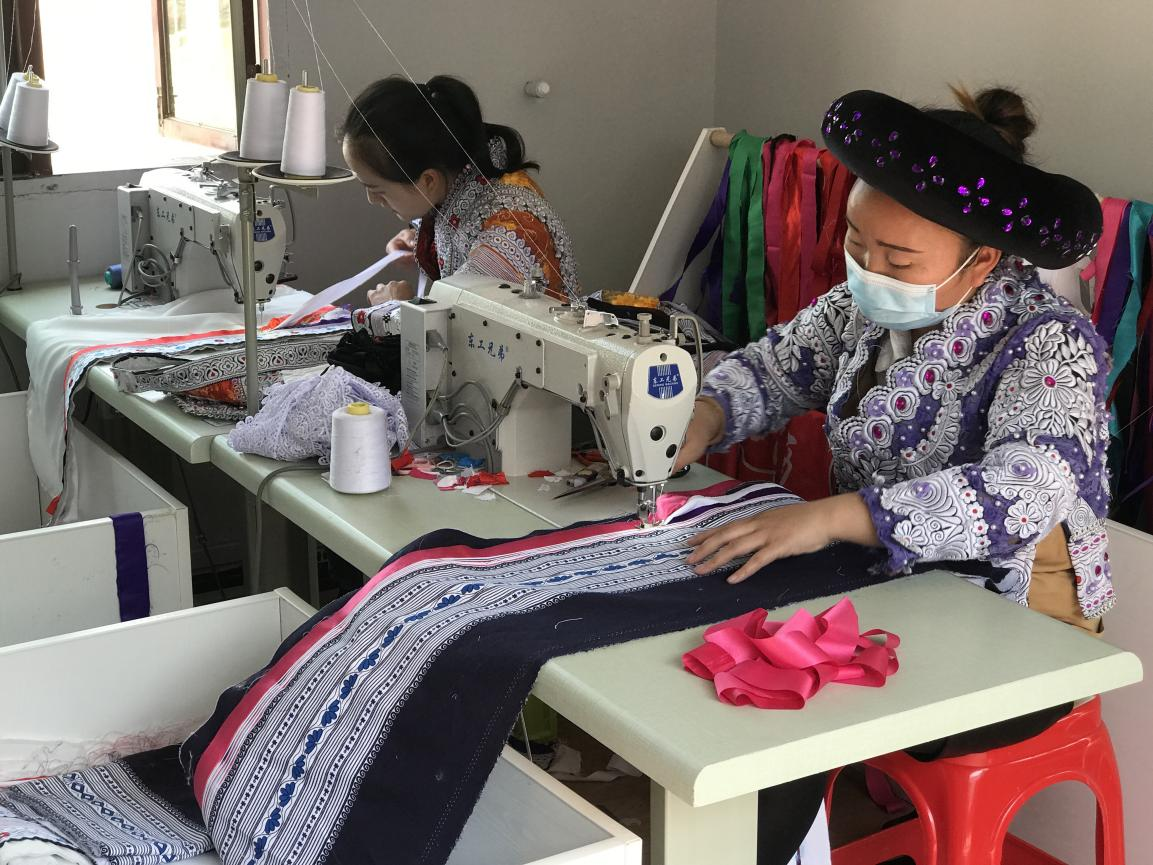 目前,該車間有刺繡車間、縫紉車間、蠟染室、設(shè)計師、裁剪室、產(chǎn)品展示間等廠房18間,擁有縫紉機16臺、高速繡花機2臺。解決當?shù)厝罕娋蜆I(yè)30人,其中固定職工25人、臨時工5人。