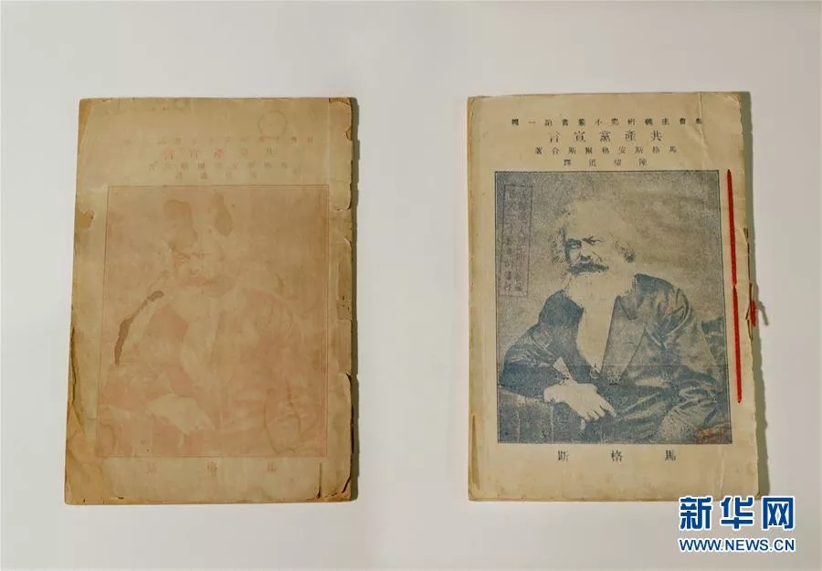 在中共一大會址紀念館拍攝的1920年8月(左)和9月出版的《共產(chǎn)黨宣言》中文全譯本。新華社記者 劉穎 攝