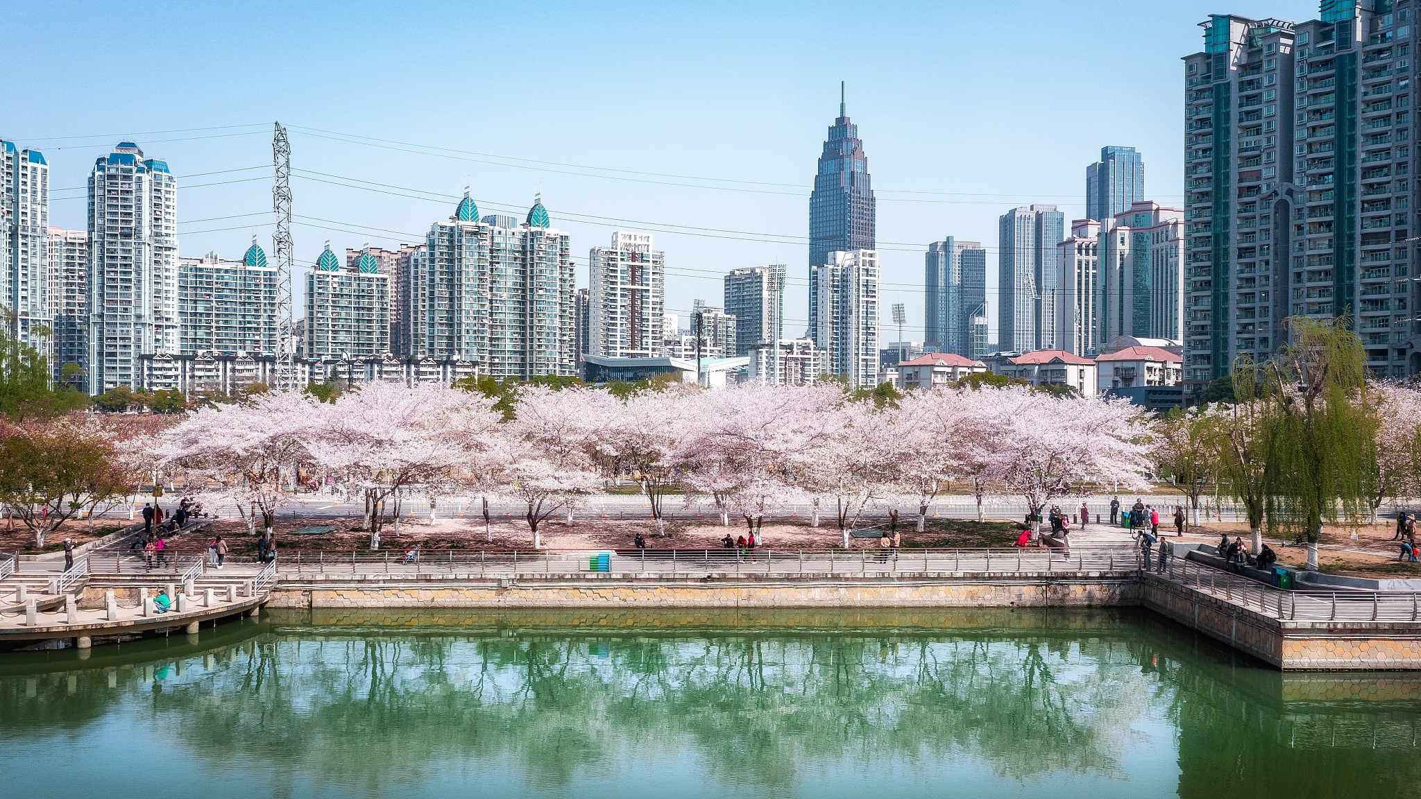 2021年3月24日,武漢,西北湖旁的櫻花花開正盛(圖片來(lái)源:CFP)