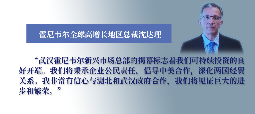 霍尼韋爾全球高增長地區(qū)總裁沈達理闡述了投資湖北的原因:湖北地理位置優(yōu)越,是中國重要的工業(yè)基地,是技術(shù)創(chuàng)新的策源地,可輻射整個中國,成為從中國沿海市場進軍中西部新興市場的根據(jù)地。