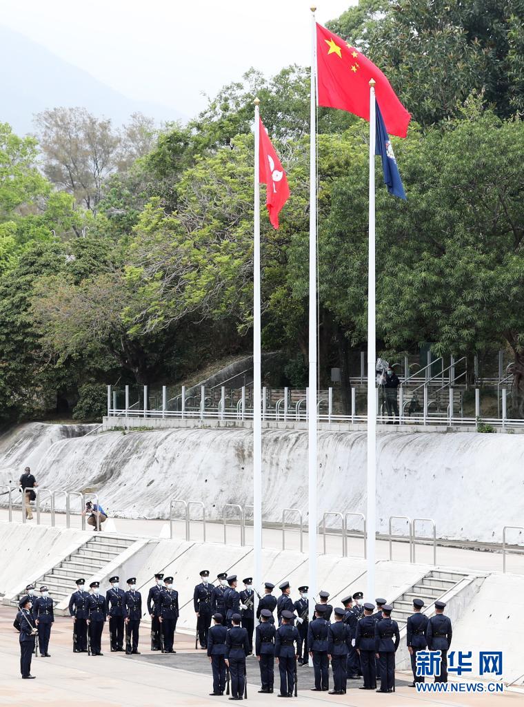4月15日在香港警察學(xué)院拍攝的升旗儀式。新華社記者 李鋼 攝