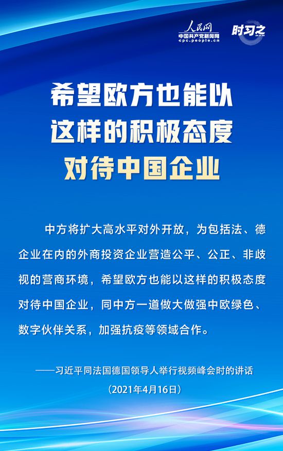 【編者按】4月16日下午,國家主席習近平在北京同法國總統(tǒng)馬克龍、德國總理默克爾舉行中法德領(lǐng)導人視頻峰會。三國領(lǐng)導人就合作應對氣候變化、中歐關(guān)系、抗疫合作以及重大國際和地區(qū)問題深入交換意見。人民網(wǎng)·中國共產(chǎn)黨新聞網(wǎng)“時習之”欄目摘錄了習近平在這次視頻峰會上的重要講話內(nèi)容,一起學習。