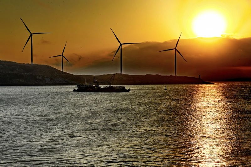△根據(jù)“十四五”規(guī)劃和2035年遠(yuǎn)景目標(biāo)綱要,我國(guó)將推動(dòng)能源清潔低碳安全高效利用,加快新能源、綠色環(huán)保等產(chǎn)業(yè)發(fā)展,促進(jìn)經(jīng)濟(jì)社會(huì)發(fā)展全面綠色轉(zhuǎn)型。圖為在福建南日島海域拍攝的風(fēng)力發(fā)電場(chǎng)。