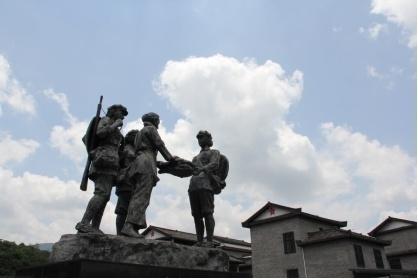 湖南省郴州市汝城縣沙洲村的“半條被子”雕塑。(鄺西曦?cái)z)