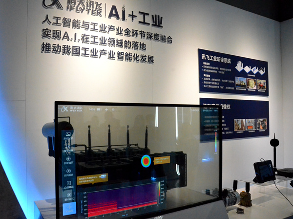 西海岸新區(qū)科大訊飛未來港內(nèi)展示的通過分析機械異響診斷機械故障的技術。人民網(wǎng)記者 孫博洋攝