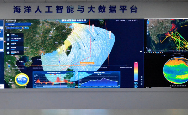 西海岸新區(qū)海洋大科學中心里的海洋人工智能與大數(shù)據(jù)平臺。人民網(wǎng)記者 孫博洋攝